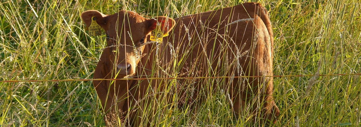 … hatte das bestimmt nichts zu tun, dass da an einem sonnigen Nachmittag im Herbst plötzlich ein Kalb auf dem Radweg vor mir stand. Der kleine Kerl war eindeutig ausgebüxt. Seine Kollegen, die brav auf ihrer Weide standen, hatten sich neugierig hinter dem Zaun versammelt, der auf den ersten Blick keinerlei Beschädigung aufwies. Wie war es dem Halunken nur gelungen, aus diesem Hochsicherheitstrakt auszubrechen? Schließlich gab es da sogar zwei Zäune, von denen einer unter Strom stand. Hatte der vielleicht die Flunder gemacht und war unter dem Zaun durchgerobbt? Oder einen großen Anlauf genommen um dann – hopp – das Hindernis mit einem beherzten Sprung zu überwinden?